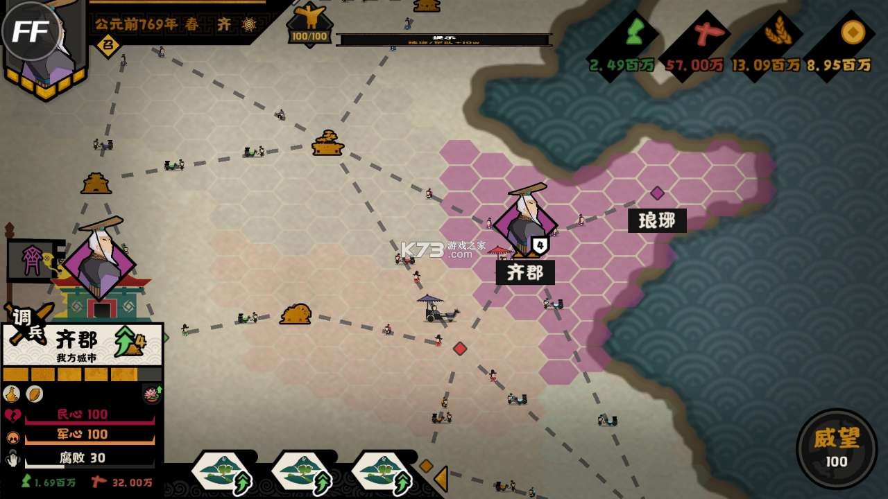 游戏内你需要选择一方势力来作为自己的国家进行策略的安排,然后帮助发展;