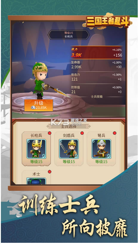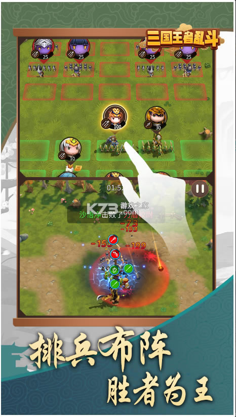 三国乱斗王者是一款挂机放置类型的休闲益智手机游戏,三国乱斗王者游戏采用经典的中国古代三国题材作为游戏特色,以独特的策略战术放置作为游戏的主要玩法。三国乱斗王者在游戏中,玩家可以自由挑战沙盘,三国乱斗王者更有多人竞技模式等待玩家体验,玩家可以邀请上自己的小伙伴一同来并肩作战!
