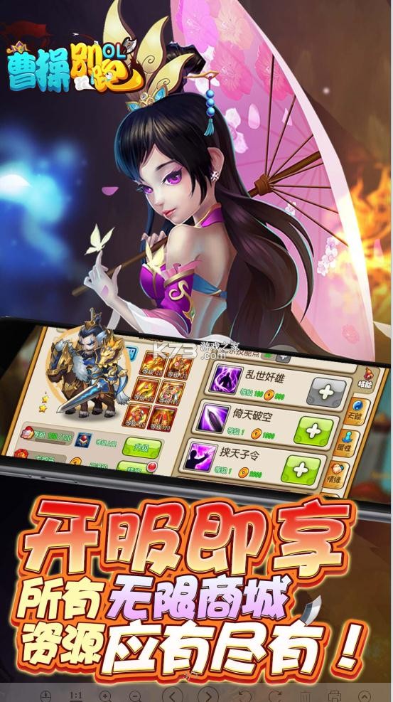 《曹操别跑-无限商城》一款策略豪华实时国战类游戏,给你一夫当关的快感!第一款不花钱也能玩的三国实时国战正版爽游!赶快来玩!在三国历史背景下,打造了一个全新的三国世界,曹操别跑可以让玩家配合着三国背景率领着自己熟悉的三国名将一起征战四方!开服即享无限商城,所有资源应有尽有!每天上线赠送欧皇卡,欧皇卡最高可赠送1888000元宝,每天抽不停!带领自己心爱的武将征服这个全新的三国吧!