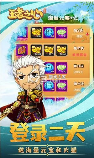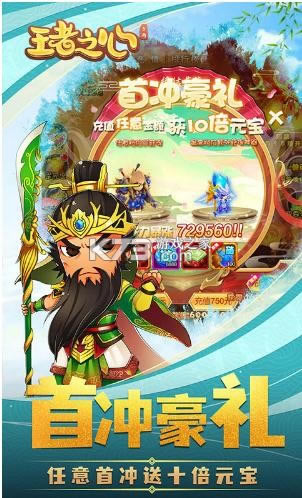 《王者之心》上线充值送神将,登录就送海量的元宝和火猫,福利多首冲送豪礼,任意首冲送十倍的元宝,豪礼领不停,累积登录共计可领百万元宝,在这里争霸中原制霸三国,解锁角色丰富的坐骑一步步的开启神话三国。