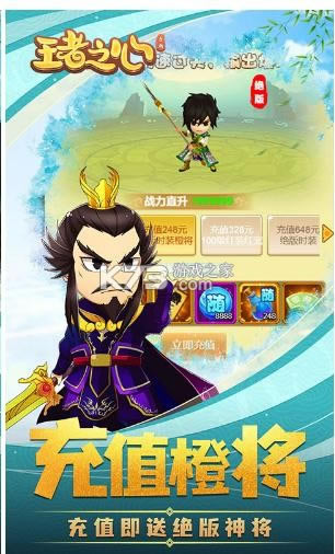 《王者之心(疯狂版)》拥有丰富的武将角色,你可以招募他们陪伴你争霸中原,一统天下;丰富炫酷战骑战宠,骑上他们开始呼风唤雨,鏖战不休!在这个属于你的三国世界里,一步步开启最顶级的制霸之旅;本版本是定制高福利版本,上线直接赠送海量元宝绑元以及各种装备材料。
