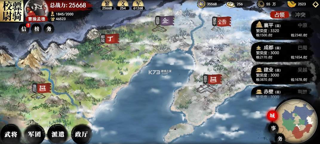 历代游戏中都会将三国时代庞大的政治军事构架完美的融入SLG游戏模式中,不过这款手游有一点很让我惊喜,就是它告别了传统SLG直接飞地、强制折返、定点翻地等有违现实的设定。玩家可以在真实地形下进行行军、战斗。