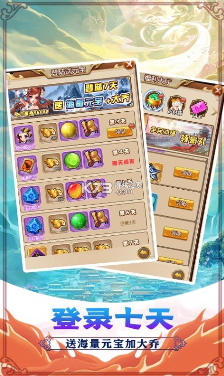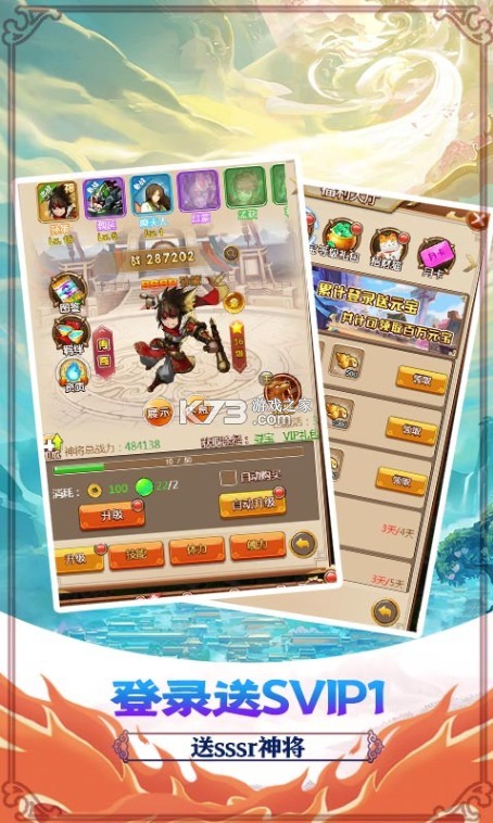 ★上线就送SVIP1、sssr神将、10000元宝、500万金币