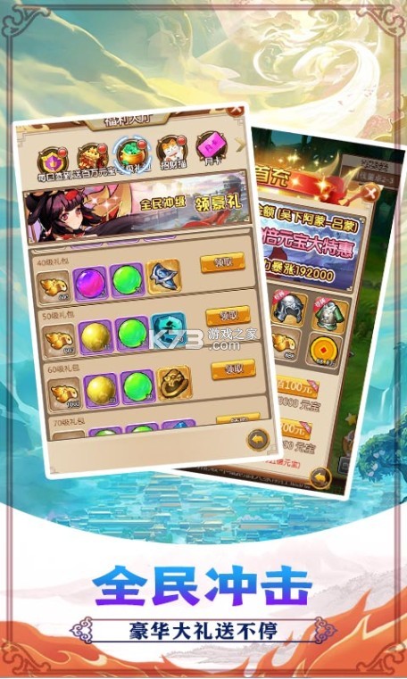 新手礼包:战灵进阶丹*30、神将进阶丹*30、光环进阶丹*30