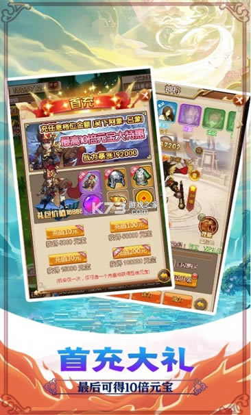 在这里大量神将也能免费领,更有无限的真充福利,天天上线领真充,超高的奖励随时都能免费拿,喜欢的玩家快来下载试试吧。