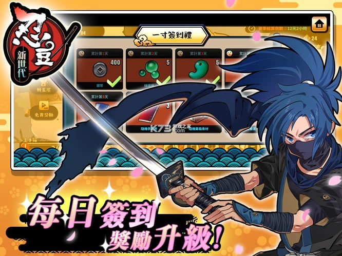 【忍豆:新世代】是一款即时对战联机PVP游戏,在遥远的古代东方有两座大型岛屿,一个是人类所居住的『猫又岛』,另一个为由鬼族所主宰的『鬼岛』,这两座岛通称『一寸国』,在猫又岛上,有一位在各地旅行并且手提着外送箱的神秘青年,预测了一个不祥的事件即将发生在此国度,于是前往调查由国家所召开的『一寸格斗大会』,但他目的并不是担任选手,而是暗中集结能够对抗即将面临的恶势力的各界高手们…..