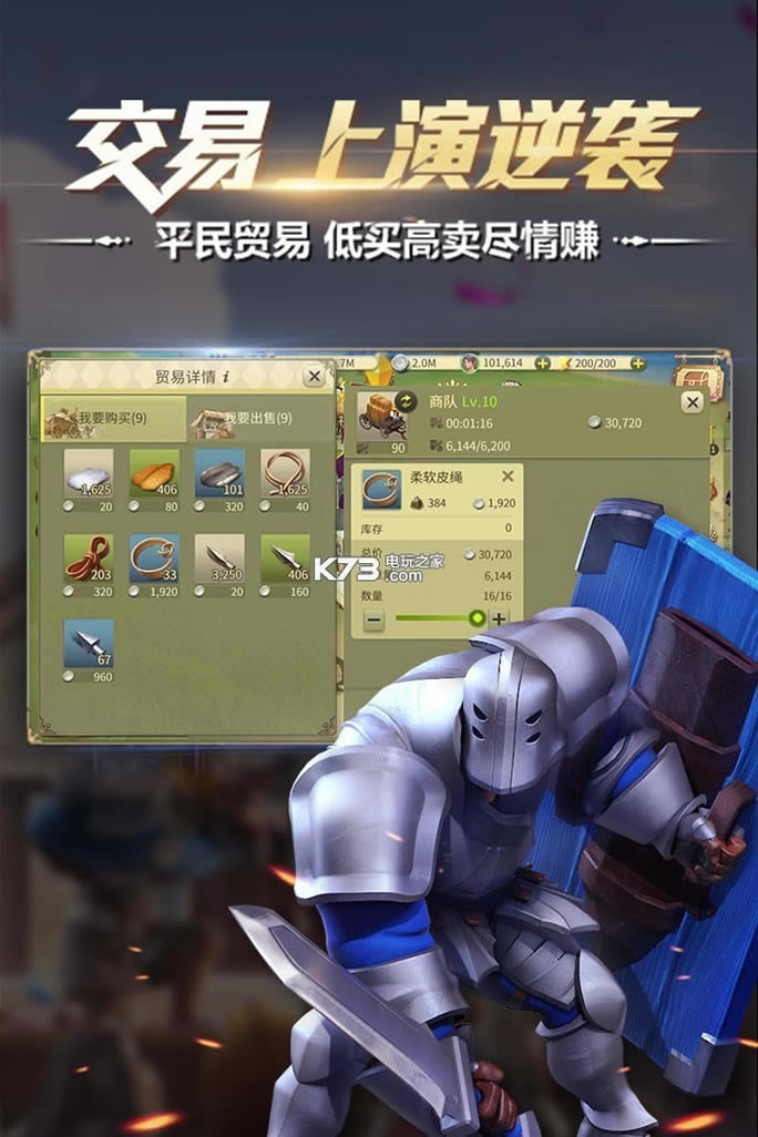 通过贸易交换资源,获取利润,加速城邦发展;与盟友一起搭配兵种组成联军,征服敌对势力。