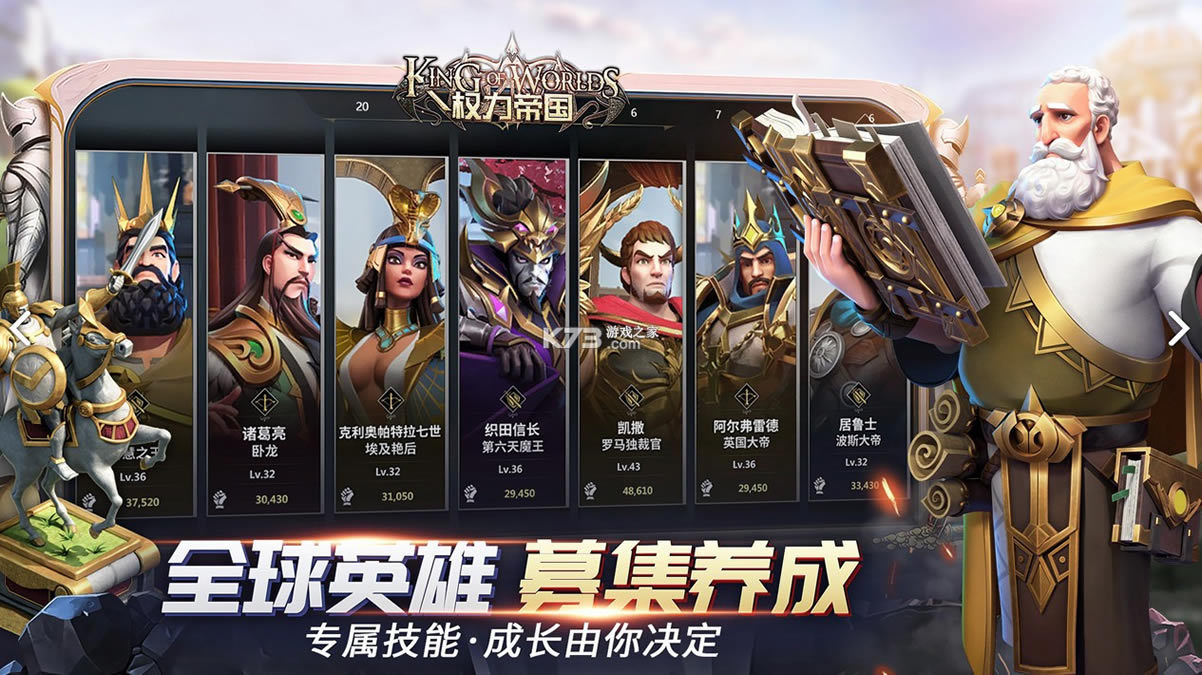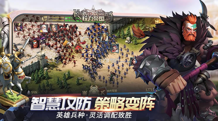 《权力帝国(King of Worlds)》是一款快节奏的世界级文明策略SLG手游,区别于传统慢节奏SLG,在这里您将化身一方领主,体验飞速升级、顺畅发育的城镇模拟经营乐趣,新颖放置挂机玩法的加入,助力资源不肝而获。即刻寻访全球著名英雄,亲手培育打造王牌军团,在这没有疆域界限的自由沙盘世界中,与来自不同国度的玩家同服竞技,战场之上策略攻防、纵横捭阖。在胜与败中缔造江山帝国,踏上世界之巅,见证属于你的荣光!