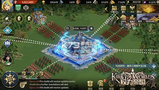 《权力帝国(King of Worlds)》是一款快节奏的世界级文明策略SLG手游,区别于传统慢节奏SLG,在这里您将化身一方领主,体验飞速升级、顺畅发育的城镇模拟经营乐趣,新颖放置挂机玩法的加入,助力资源不肝而获。即刻寻访全球著名英雄,亲手培育打造王牌军团,在这没有疆域界限的自由沙盘世界中,与来自不同国度的玩家同服竞技,战场之上策略攻防、纵横捭阖。在胜与败中缔造江山帝国,踏上世界之巅,见证属于你的荣光!
