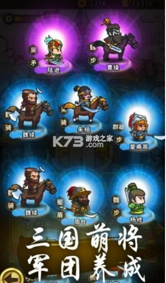 2、熟悉的武将,他们划分为多个职业,在竞技角逐中获得资源装备等;