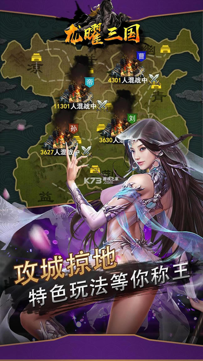 激情的卡牌国战,争夺三国各大洲版图;军团招募,兄弟集结并肩战斗!号令千军万马,跨服争霸。