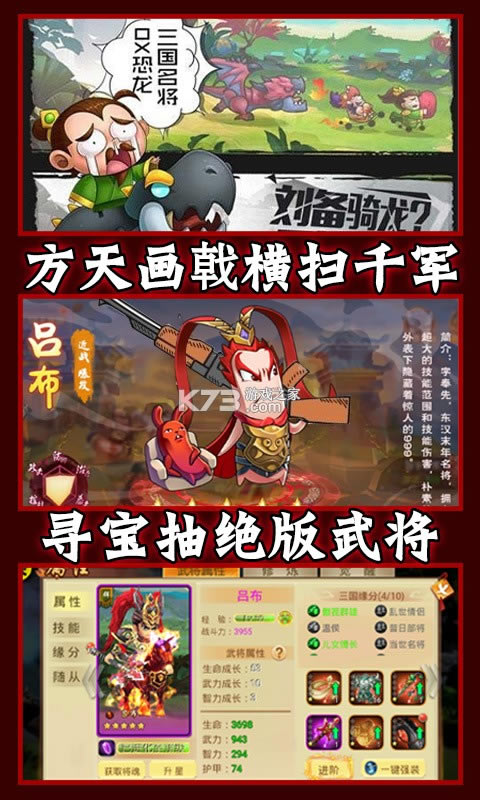 ★游戏玩法功能丰富!武将超级升阶觉醒成神!更有多种阵容搭配以及技能选择,助你横扫三国!
