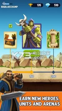 征服奖杯之路:赢得新的英雄,卡片和竞技场并增强您的力量。
