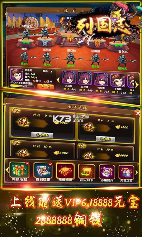 ★上线赠送VIP6,18888元宝,2888888铜钱