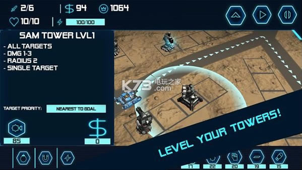 《后卫塔防td》是个科幻风塔防游戏,玩家需要在合理的位置修建防御塔来消灭敌人,后卫塔防td游戏可以对防御设备进行升级,以保护后方的基地为目标展开策略战斗吧。