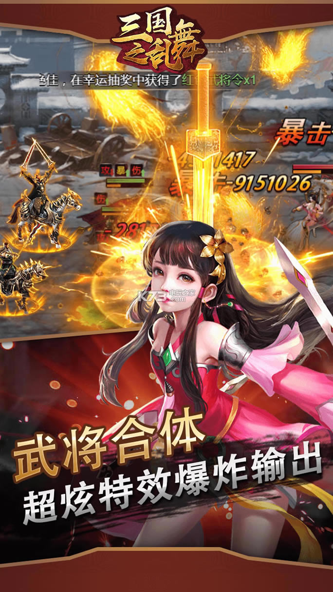 日式三国策略动作手游《三国之乱舞》公测已经开启!兵种战阵强势加盟!美女宠幸御宅趣味!你将拥有一切“高帅富”特权!骑最酷炫宝马!拥有最性感尤物!拜最霸气干爹!登陆送吕布、充值元宝翻倍、连续登陆得月英、首冲送貂蝉等等给力福利即时发布中!