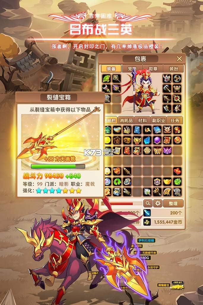 在三国的故事中,脍炙人口的战役数不胜数,挟天子以令诸侯,三英战吕布、火烧赤壁等。而主公们的征战之路上也将一一亲历这些事迹,体验到那个波澜壮阔的年代,感受英雄们的壮志雄心。