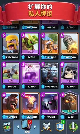 不管是憨态可掬的飞龙宝宝、英气逼人的王子,轰翻全场的闪电、火球,还是各具特色的军营建筑,都将由你一手掌控。精心设计您的战斗牌组,凭借绝佳的策略和操作,击败对手,获取奖杯!