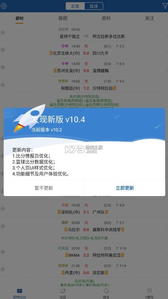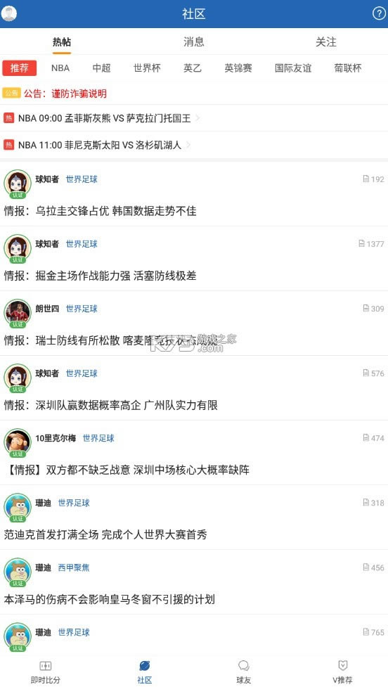 关注赛事/资讯,比分更新及时推送,达人资讯数据随时推送;