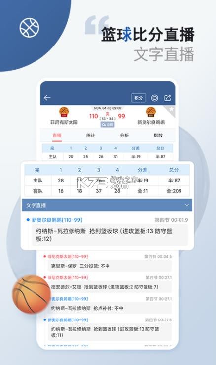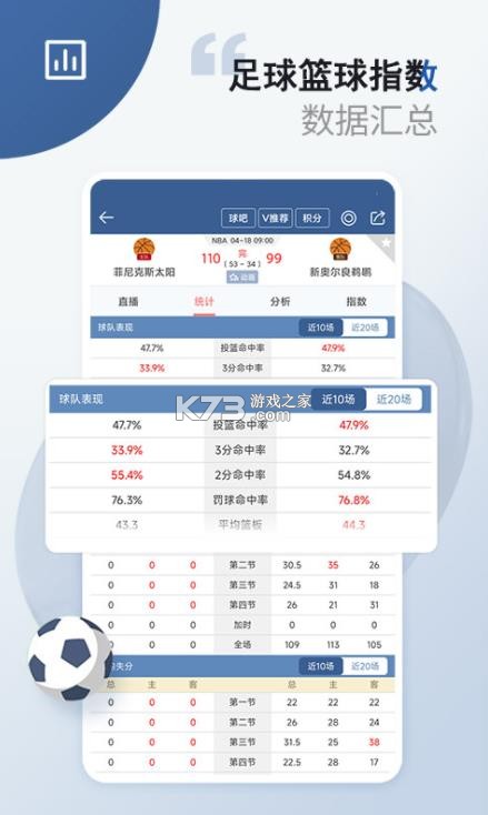 7.即时评分:最快的足球、篮球、网球评分和分数推送,并提供比赛数据直播;