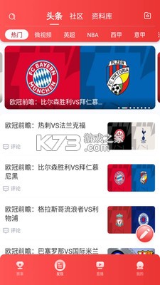 7、赛事比分:提供足球篮球即时比分,包含动画直播、文字直播、技术统计、阵容数据、情报分析等