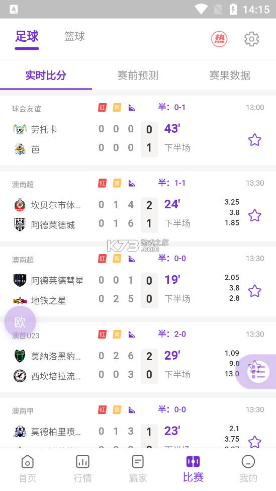 6、精彩赛事尽在掌中 实时数据一手资讯。