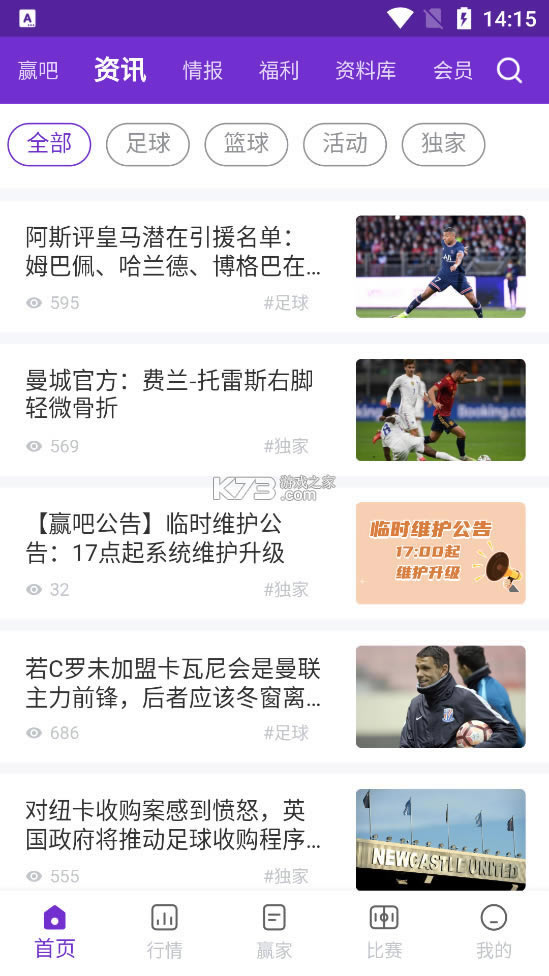 赢吧体育app是一款超级实用的体育赛事资讯平台,赢吧体育app为大家带来了超级全面的体育赛事新闻,大家可以在这里找到超多全新的新闻资讯,每天第一时间了解赛事情况,查看球队的交锋数据对比,了解运动员的动态,为你喜欢的队伍加油助威,感兴趣的朋友快来下载吧