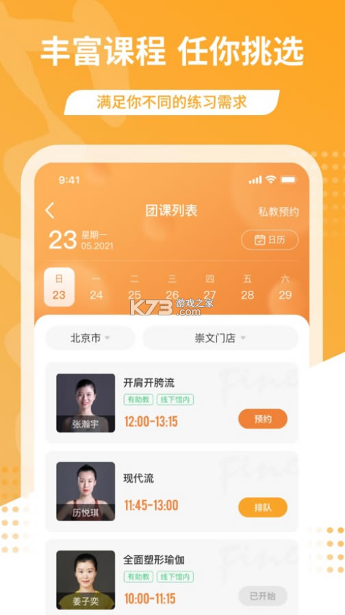 3、所有学习课程都可以查看到,在平台上进行预约,查看你附近的瑜伽场馆,进行线下练习。