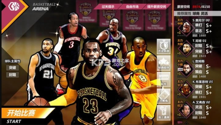 核心比赛:每个球员都有擅长的属性,每个教练都有特有的战术,还有无数让你泪奔的经典组合,然后在薪资空间内搭配出最完美的阵容,在比赛中和对手比拼相应的球星属性,靠你的策略来赢得比赛