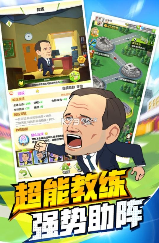 而拥有神奇足球力量的地球联盟,自然是由顶级球星们组成。34冠球王罗总裁、版本之子魔人布欧、狂拽酷炫大奉先、传奇门将圣卡西、还有....零皇!你的零皇无限猖狂,你的零皇宇宙最强! 游戏中,起步就是手握重金的球队经理,你每天要做的就是签签球星,给他们穿上+15的装备,到世界各地打外星人升级。