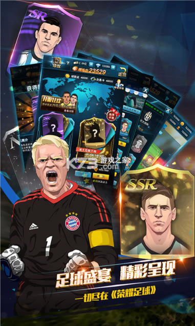 足球类型的游戏,玩家在这里操控自己的足球角色进行战斗,不断的去战斗,展现自己的风采,随时随地的进行pk作战,千元充值卡可以直接免费得到,还有著名的游戏神将UR卡恩可以获取,辅助自己进行球队的比赛,解锁更多的成就.