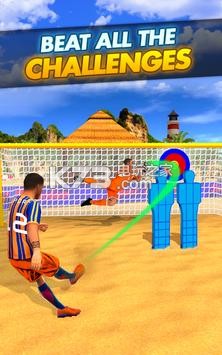 《射门沙滩足球》游戏以沙滩为背景,是款十分出色的足球射门游戏,游戏内每道关卡的难度都不一样,你需要自由的选择角度来进行踢球,成功的将球踢进门中即可。