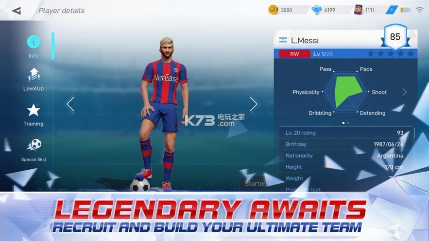豪门球星拥有专属定制形象,通过多面建模,还原球星本色。游戏中可通过升级,特训解锁专属动作特技,自由培养足坛巨星。