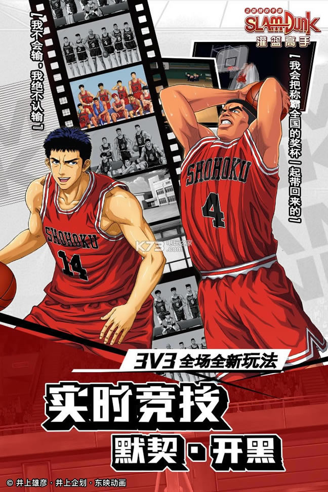 《灌篮高手 正版授权手游》是一款真人实时篮球竞技手游,由蛙扑发行,先知者研发,东映动画授权并全程监制。游戏以东映动画制作的同名动画片《灌篮高手》改编而成,对经典的致敬体现在游戏的每一部分。