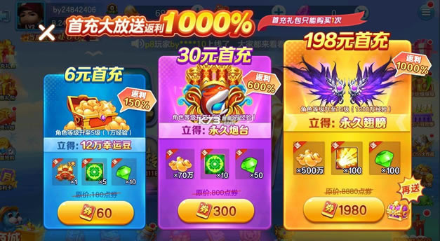活动内容:【每日连购】【今日推荐】等礼包金币大幅度提升,让你捕鱼爽翻天!