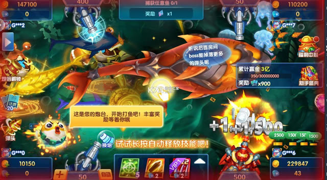 千炮副本,神秘BOSS用超强千倍炮对抗神秘的海底BOSS,独创技能狂暴分身轰翻全场,无论何种BOSS都一网打尽,称霸深海!