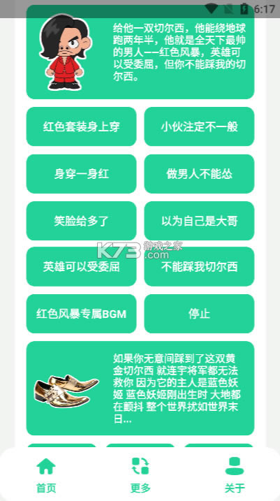 《蓝色妖姬盒》这是一款非常搞笑的语音包软件,软件中的语音盒角色是最进非常火的蓝色妖姬,是一款语音包盒子系列的软件,带有恶搞的元素,软件中有各种蓝色妖姬的语音非常的魔性,非常多经典的语录,可以免费使用。