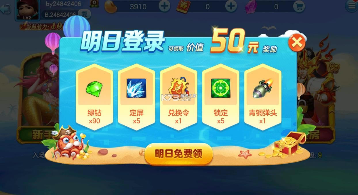 实时渔场在线领免费金币,打鱼捕鱼还能抽大奖,更有精彩活动豪送丰厚奖励,助您一路成为捕鱼大神,羡煞旁人!另外,每日登录游戏可以领免费金币,每天都有新收获,记得来登录哦~