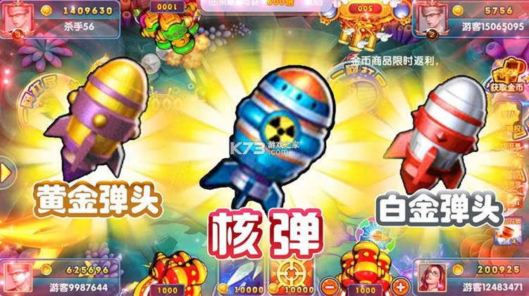 6、千万倍率:五种鱼炮,千百倍率随意切换,捕鱼也要有特色。