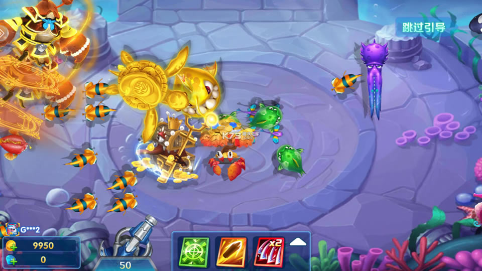 -双倍能量炮:捕获鱼类后随机获得,拥有它捕获鱼类后能获得双倍奖励。