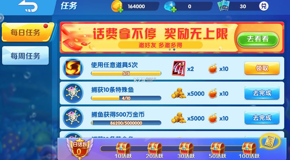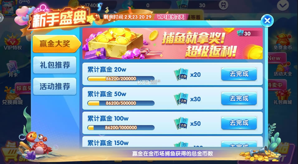 《财神捕鱼》红包版安卓版就是财神捕鱼话费版本提供了,登录进入游戏首页大厅就直接送给你话费券,就是这么高的福利,让你享受起来!给你更多活动还有超多新手活动奖励,绝对是送话费没错了!
