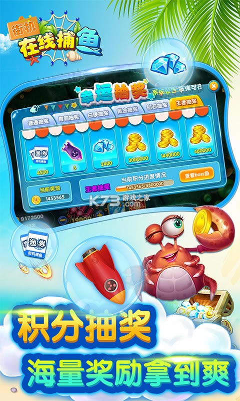 最绚丽的鱼群,最新奇的玩法,还有最具吸引力的奖品,不仅继承了传统街机玩法,还在此基础上大作创新,构建了一个绚丽的海底世界。