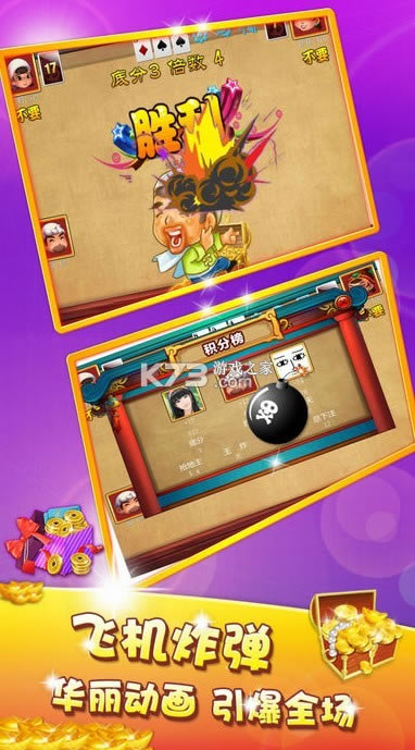 8、精美画面:全新界面,超逼真3D场景与平面场景可随意切换选择,打牌也要视觉享受!
