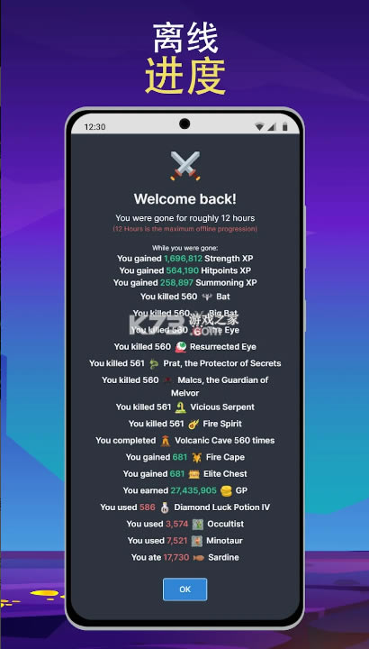 6.除了20多个可升级的技能外,游戏还拥有离线进度、兼容云保存功能、内置仓库/库存系统等更多功能!由于持续稳定的更新,您的冒险将永无止境。