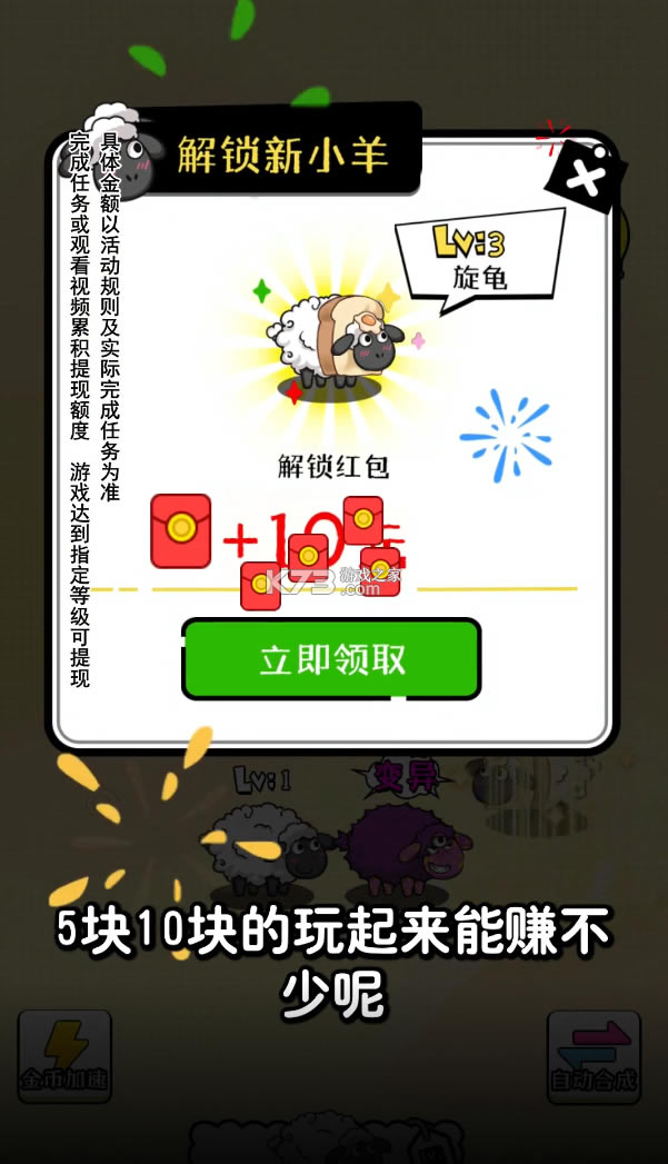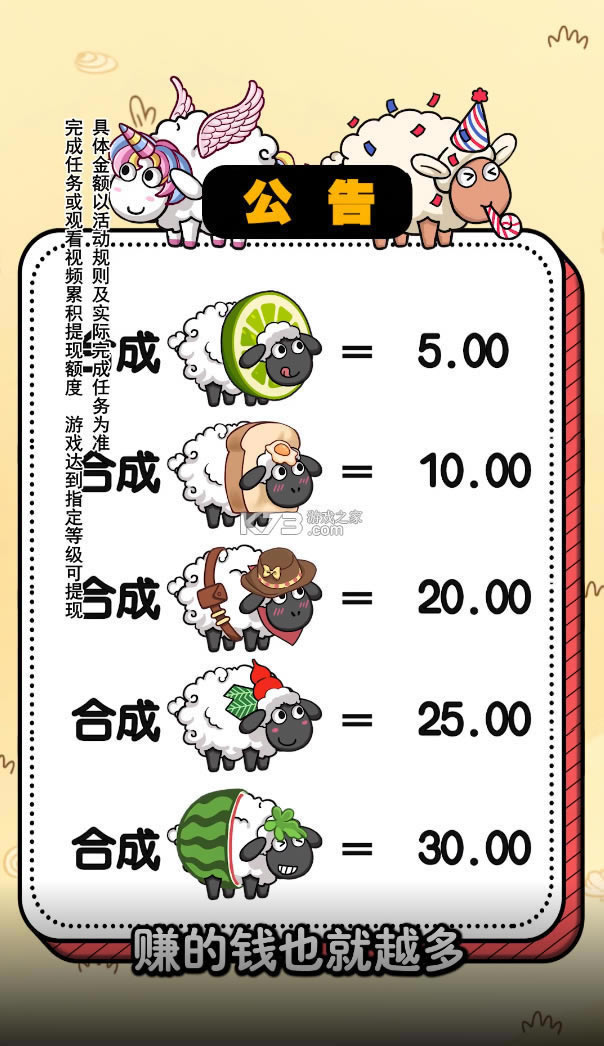 -小羊会按时长大,你只需要定点合成,就能轻松赚红包。