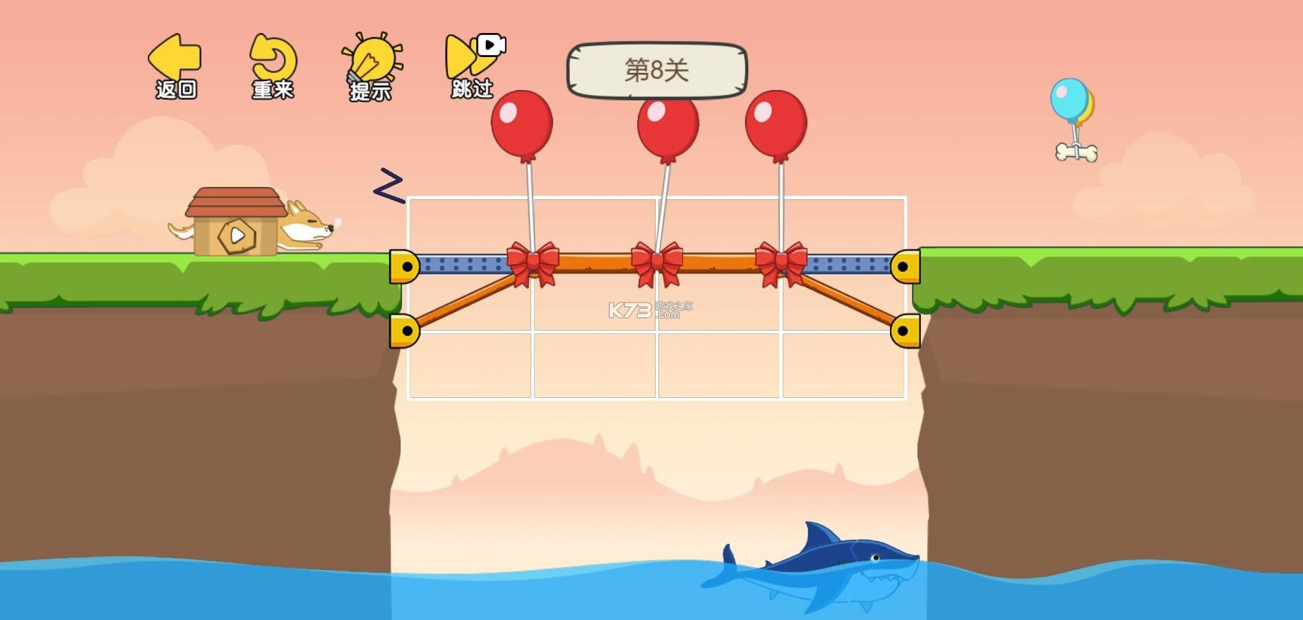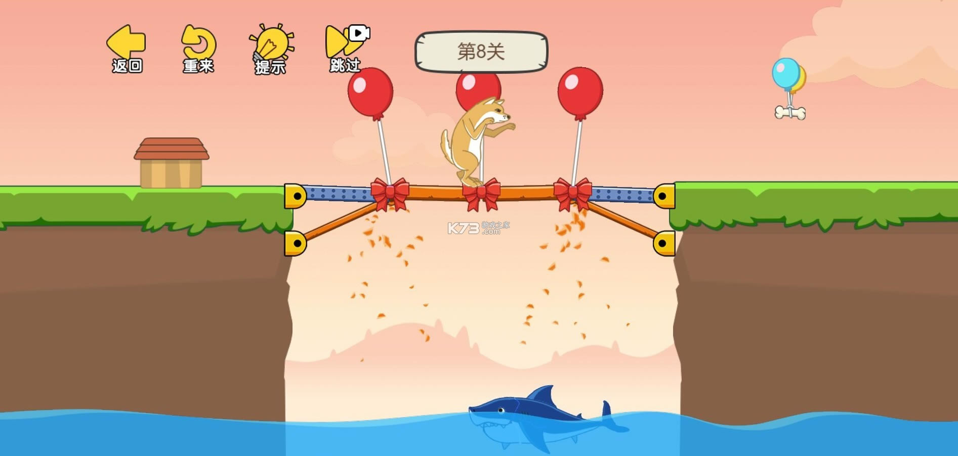 这关脑洞大这款游戏非常考验用户们的头脑思维灵活程度,操作十分简单,玩家们只需要在游戏当中控制小狗向前走,躲避许多的危险,来到达终点,玩家们在游戏当中可以不断的学习到各种游戏的玩法以及独特的技巧。