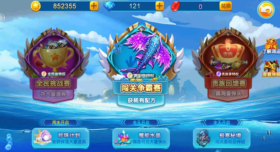 五大捕鱼情景,绚丽多彩画面、精致炮台达到挑剔的你。