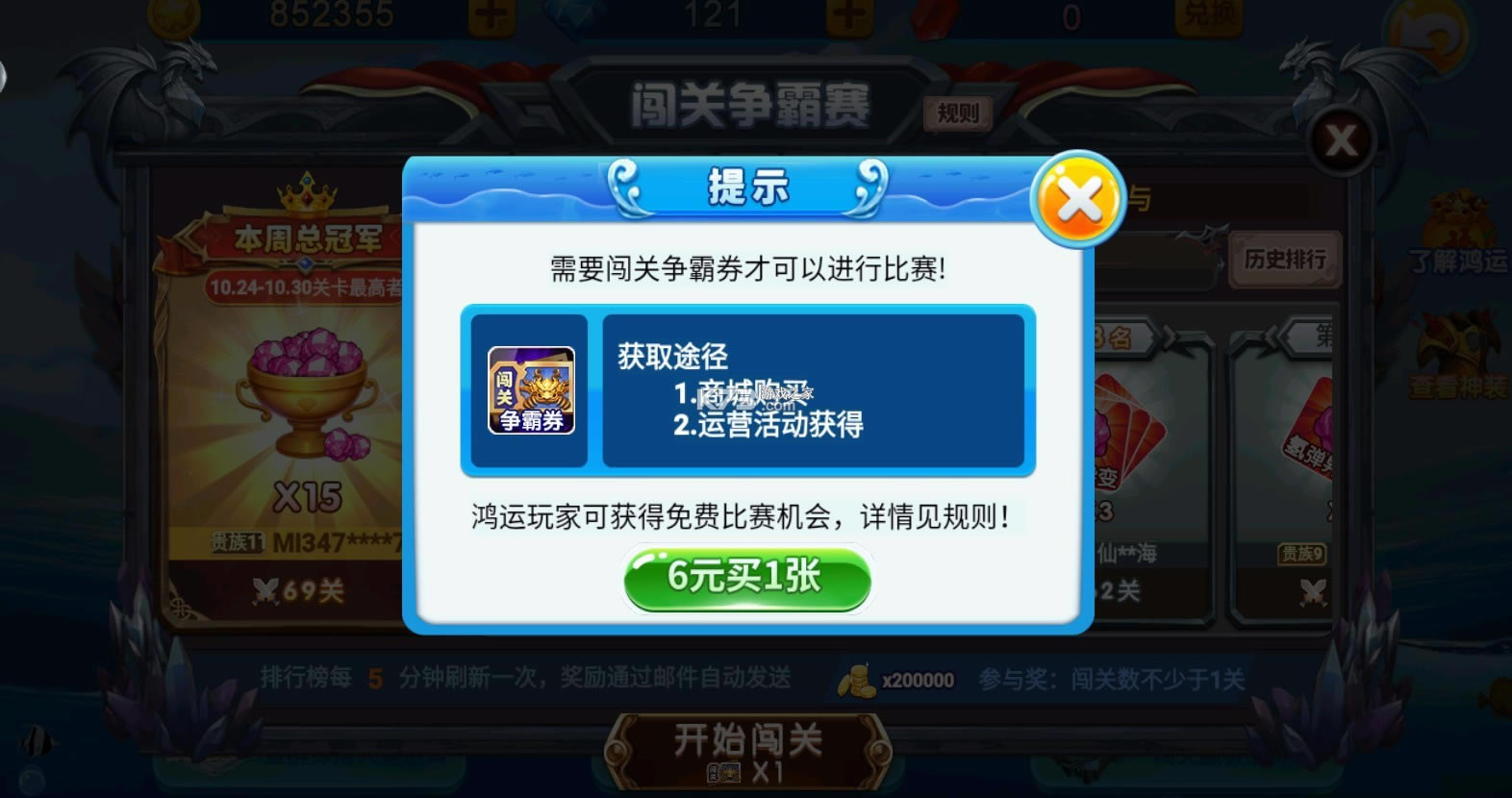 《梦幻捕鱼闯关争霸版本》可以加入捕鱼闯关模式了,能够选择闯关进行体验了。每天都可以开始新的闯关,可以加入闯关3次,然后也需要门票才可以开启新的模式了,更多闯关争霸福利可以领取到位了。