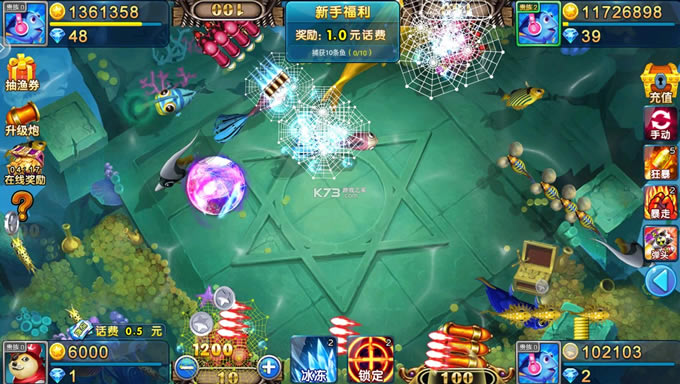 《麦游梦幻捕鱼》可以直接加入捕鱼新手对局,领取一元话费红包了,捕捉10条鱼就可以领取了,并且签到还给你话费红包,直接充话费爽歪歪了。捕鱼玩起来超爽的,目前还有贵族充值返利捕鱼活动,超级划算哟!