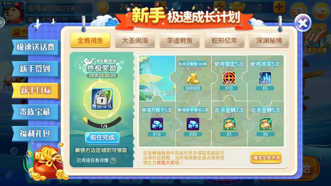 在梦幻捕鱼游戏中,你可以挑战各种街机捕鱼,整个捕鱼的任务和福利还是非常多的。